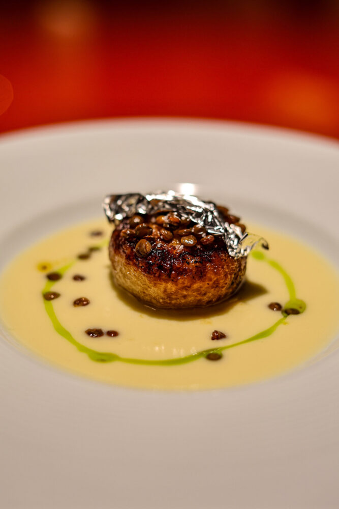 La cucina è di una solidità importante. Gioacchino è in stato di grazia. Maturo e affidabile. È il cuoco che tutti vorrebbero. Garbato, educato, preciso. Mai fuori le righe, con spirito stakanovista. Il lavoro come gesto responsabile, la “fatica” come obiettivo a cui ambire, non dà cui nascondersi. Ogni piatto è costruito con una logica e segue dei parametri precisi. Non in maniera integralista, il territorio è presente sia nel vegetale che nella proteina. Tecniche di cottura, sapori, profumi, equilibri, consistenze, texture, raccontano le conoscenze e le esperienze maturate in cucine importanti, negli anni di formazione.