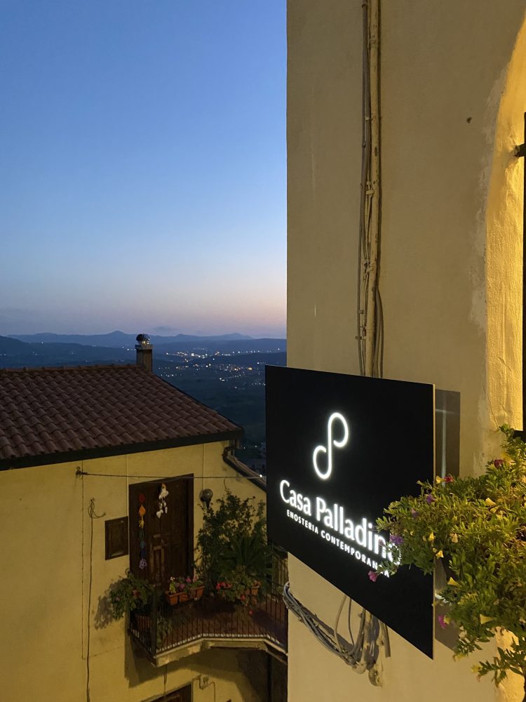 Intanto va sottolineata la location di Casa Palladino Enosteria Contemporanea, che trova sede in un antico palazzo nel centro di Guardia Sanframondi, che fa parte di un progetto di ricupero inteso a valorizzare, conservare e rendere fruibili gli edifici che fanno parte del patrimonio culturale del luogo. Casa Palladino appartiene al complesso monumentale del Castello Medievale, ed è una dependance dello stesso, che gode di una vista spettacolare sull’intera valle telesina.