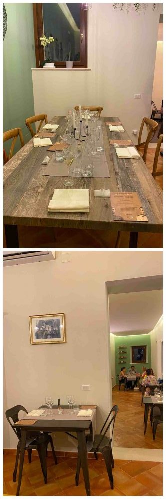 Una di queste ha visto una cena preparata a quattro mani in una deliziosa quanto curata “enosteria”, dove il vino ruota intorno alla cucina dello chef Gianluca Pingue.