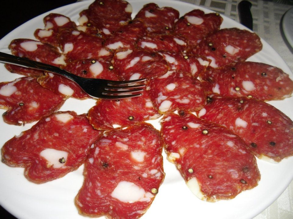 La batteria di antipasti stordisce per ricchezza e sapori, ma è difficile rinunciare ai peperoncini verdi fritti con pomodori e basilico, alla parmigiana di melanzane, alla polenta condita, alle meravigliose soppressate asciutte, saporite e con l’immancabile quadrato di grasso al centro. E ancora, torta rustica di ricotta e spinaci, parmigiana di zucchine, melanzane a funghetto con cacioricotta di capra, zucca marinata, gattò di patate, melanzane grigliate morbide ma carnose e benissimo eseguite.