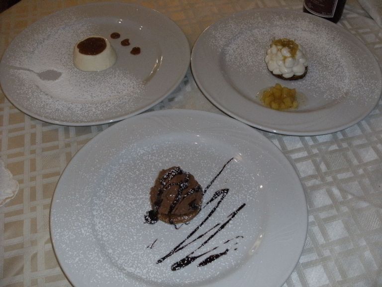 In ultimo sono stati serviti dei dolci squisiti ed imperdibili, degni di un pasticciere professionista: una mousse al cioccolato, un semifreddo di ricotta e mele e panna cotta con marmellata di fichi.