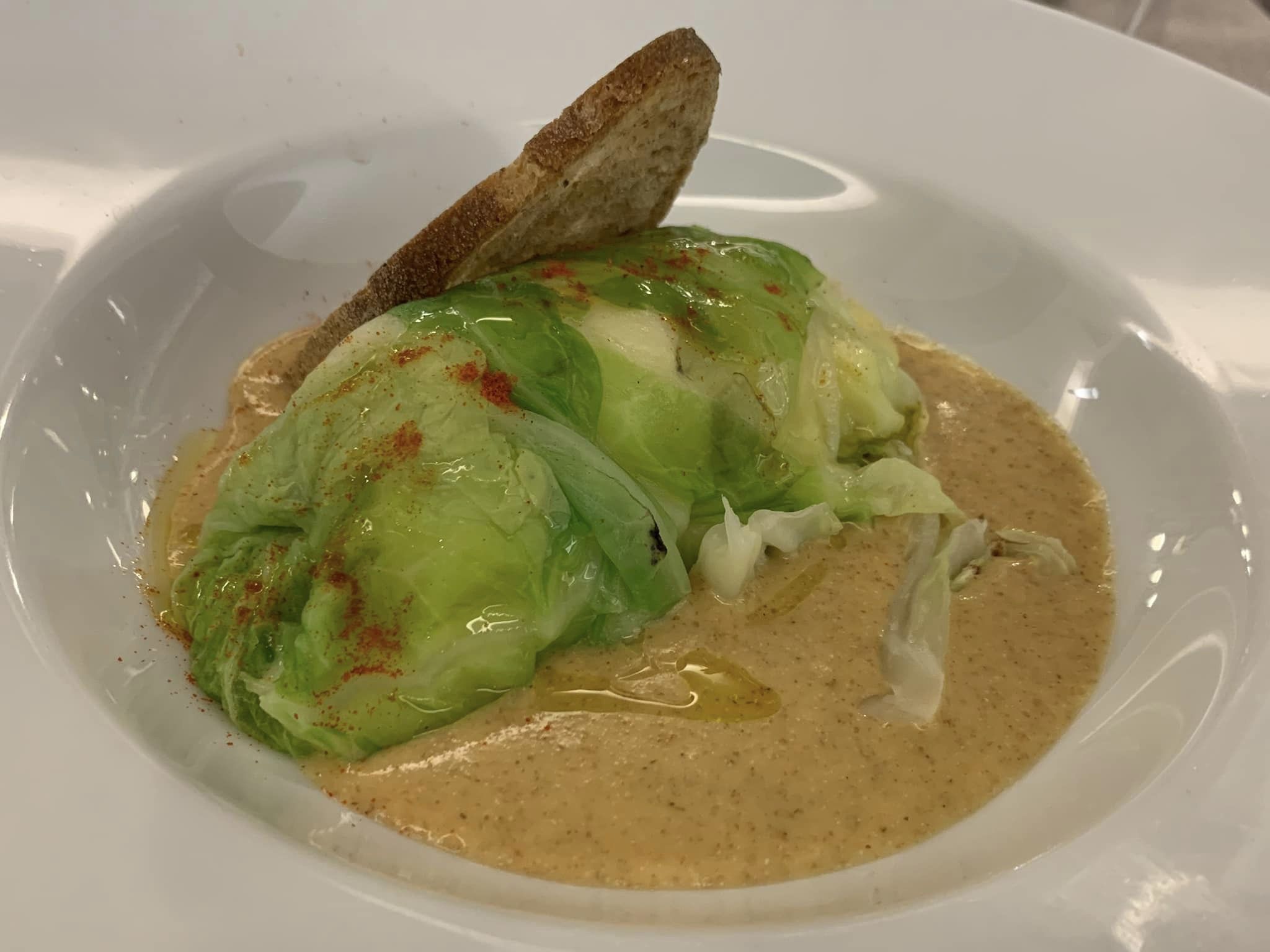 E, ancora, zucca arrostita, gatto’ di patate, cime di rapa ripassate in padella, olive ‘ammaccate’ e condite in proprio, zuppetta di fagioli, polenta. Davvero gustoso anche l’antipasto del giorno, un involtino di verza e patate con provola e crema di polenta. Il pane cilentano con questi piatti, poi, è di grande compagnia.