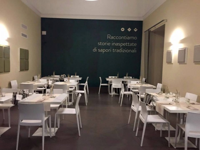 Lo spazio elegante e pulito nelle linee curato dall’architetto Paolo Perilli, che ha creato un’architettura moderna rispettosa della preesistenza perché si tratta di un edificio dell’800, si sviluppa in due ampie e luminose sale sullo stello livello, comprende anche un’area all’aperto con giardino in cui è stata realizzata una tensostruttura ombreggiante per poter godere di un’oasi di tranquillità in pieno centro e, sempre qui, troviamo una zona dedicata al gioco dei bambini, leggermente defilata, per evitare che possa creare disturbo agli ospiti. I colori rimandano alla natura e riprendono quelli del logo e dei menù. I coperti sono 240 tra interno ed esterno.