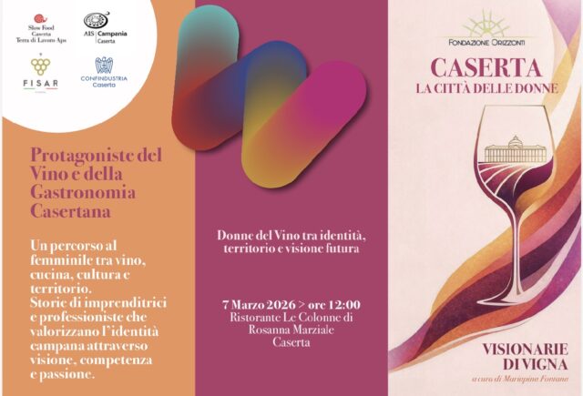 CASERTA — Il vino come narrazione, cultura e visione contemporanea declinata al femminile. Sabato 7 marzo 2026, a mezzogiorno, il Ristorante Le Colonne di Rosanna Marziale ospiterà “Visionarie di Vigna – Donne del Vino tra identità, territorio e visione futura”, incontro degustazione dedicato alle protagoniste dell’enologia casertana, ai loro vini e alla loro cucina, a cura di Mariapina Fontana, presidente della Sezione Turismo di Confindustria Caserta, inserito nel programma del festival «Caserta – La Città delle Donne», promosso da Fondazione Orizzonti.