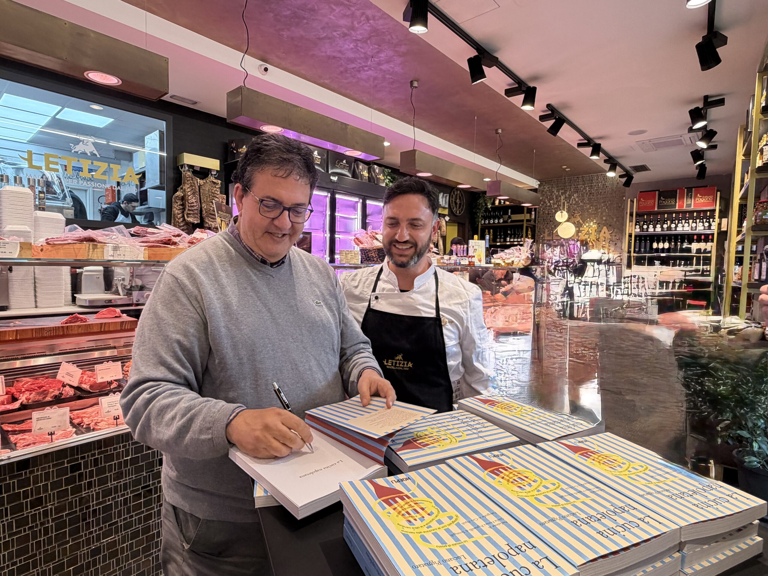 Luciano Pignataro e Fabio Letizia – Macelleria Gastronomia Letizia 15/3/2026 Torna a: Caserta. La Cucina Napoletana di Luciano Pignataro presentato alla Macelleria Gastronomia Letizia 1960 Luciano Pignataro e Fabio Letizia – Macelleria Gastronomia Letizia← PrecedenteSuccessiva →