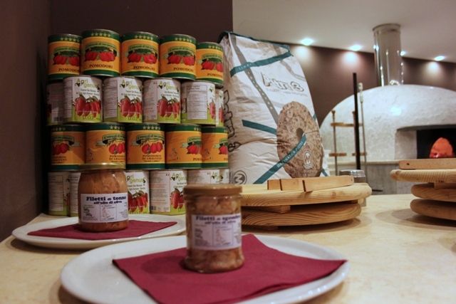 Elementi essenziali: San Marzano Dop e Presidio Slow Food Agrigenus; Pomodorini del Piennolo del Vesuvio Dop Pacchetella Azienda Agricola Sapori Vesuviani; Pomodori Miracolo di San Gennaro di Sabato Abagnale; Olio Pregio Dop; Fiordilatte di Agerola Fusco; Mozzarella di Bufala Garofalo; Alici e Tonno di Cetara; Farina Petra 3 Molino Quaglia.