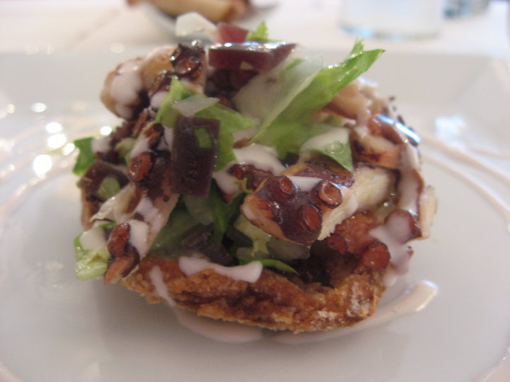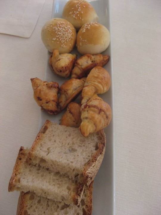Per iniziare Rosanna propone sempre un singolarissimo antipasto, studiato per coinvolgere tutti i sensi, tatto compreso, infatti si mangia con le mani, si chiama Biancadolio: mozzarellina di bufala ripiena di olio extravergine d’oliva e croccante di pane cafone. Il piatto sul quale è servito è stato pensato da Rosanna, totalmente bianco porcellanato per richiamare il colore della mozzarella, un canaletto al centro nel quale è posta la polvere di pomodoro essiccato, di fianco un bicchierino con l’acqua della mozzarella nella quale intingere pollice ed indice, con i quali poi afferrare la mozzarellina, farla rotolare sul rosso insolente del pomodoro per portarla poi alla bocca.