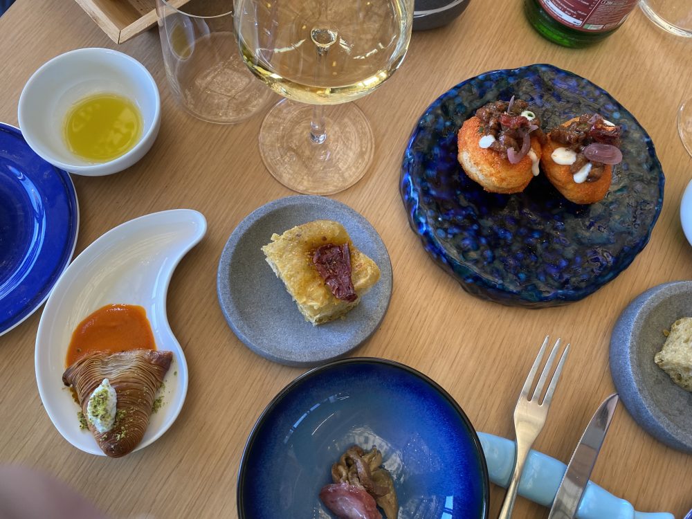 La cucina è quella mediterranea: pesce fresco e verdure di stagione, che va da una classica frittura alla tartare, agli spaghetti alle vongole, al plateau di crudi, all’impepata di cozze, al brodo di polpo, alle ostriche, con una cura del dettaglio non indifferente.