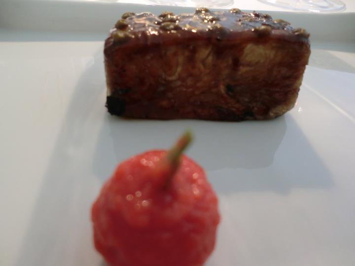 Reale a Casadonna. Maialino croccante, salsa al caramello di arancia e maionese di patate all'olio (FotoPigna)
