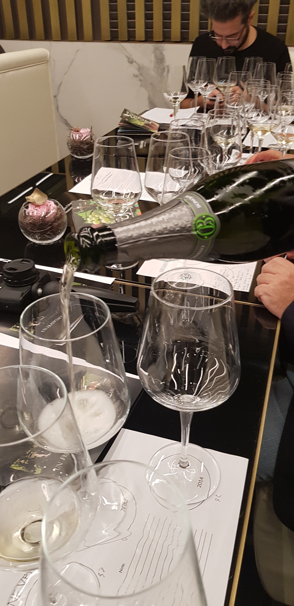 La degustazione verticale inizia subito con una chicca, una sperimentazione assoluta, ovvero uno spumante 100% Erbamat portato in degustazione come pietra di paragone con gli altri vini in successione. In effetti lo spumante è come mi aspettavo: deciso, sapido, con una acidità spinta che indubbiamente non so in quanti potrebbero apprezzare. Da qui la volontà di tagliare l’Erbamat con altri vitigni in grado di dare complessità e maggiore morbidezza.