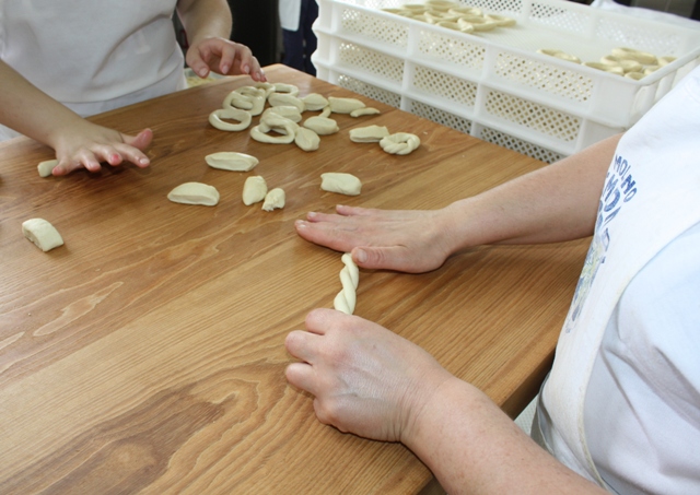 All’impasto segue la fase di lievitazione, altro momento in cui sale in cattedra l’esperienza, visto che parliamo della fase sicuramente più variabile a secondo della temperatura e delle condizioni del tempo. Terminata la lievitazione si passa alla lavorazione. La capacità delle donne sta nel tagliare i diversi filoncini che vengono preparati con l’impasto nella giusta dose per ottenere il tarallo. La produzione oggi è soprattutto di biscotti “lisci”, ma un tempo – quando tutto avveniva a mano, si praticava la pratica dell’intreccio, per dare la forma “classica” alla nostra idea di taralli.