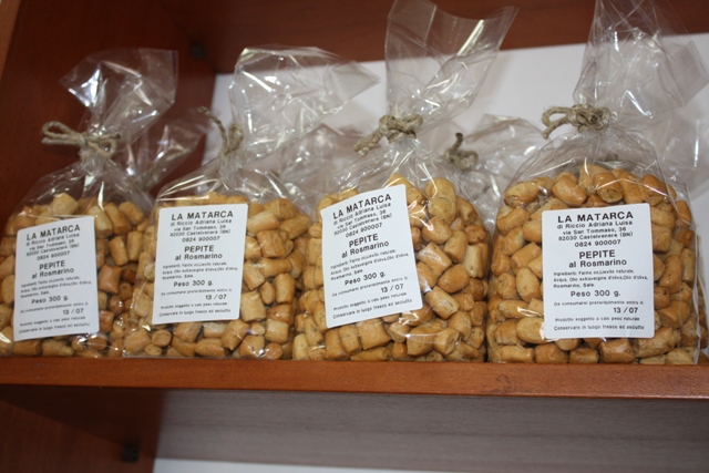 Con lo stesso impasto si ottengono le pepite, piccoli tozzetti insaporiti nelle varianti al finocchietto, rosmarino o sesamo. Altro prodotto di tradizione sono le cosiddette “pastarelle della sposa”: devono il loro nome alla colorazione bianca che assumono in cottura e soprattutto al fatto che nei tempi antichi rappresentavano i “dolci” delle feste matrimoniali del luogo.