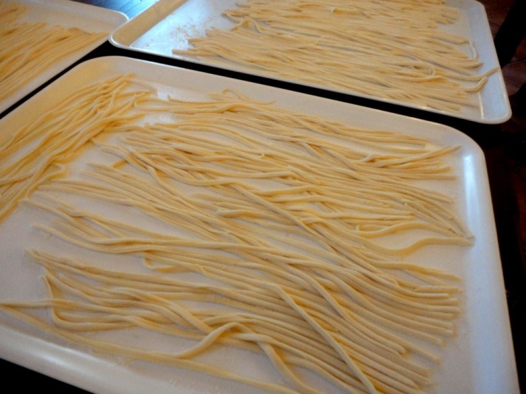 La maccaronara è un tipo di pasta fatta a mano. L’impasto di acqua e farina, qualcuno ci mette pure alcune uova, è lo step preliminare per la preparazione della “pettola”che poi si lavora con lo strumento detto appunto “Maccaronara”. Dalla lavorazione se ne ricava un tipo di pasta lunga a sezione triangolare che ben si adatta a diversi tipi di cucina. La particolare tecnica di preparazione di questo tipo di pasta e lo strumento che si usa, donano alla “Maccaronara” la caratteristica di non poter essere prodotta con nessun tipo di tecnica diversa da quella manuale.