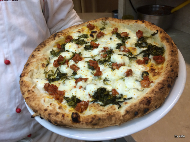 La Casareccia, impasto Napoli e rapa caula con salsiccia rossa e fiordilatte.