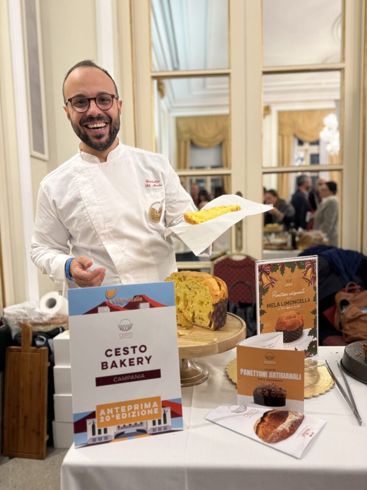 L’Hotel Excelsior di Napoli ha ospitato l’Anteprima della XX edizione di Vitigno Italia in un clima già carico di atmosfera natalizia: sale piene, etichette da tutta Italia, professionisti, appassionati e una città che, affacciata sul mare, sembrava respirare festa. In questo contesto ricco di assaggi e storie, uno dei momenti più attesi è arrivato dal banco di Cesto Bakery, dove Catello Di Maio ha presentato il suo Panettone alla Mela Limoncella, affiancato da Mimmo De Gregorio, patron del ristorante Lo Stuzzichino di Sant’Agata sui Due Golfi.