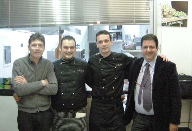 Ci sono strade destinate a diventare famose per qualche motivo misterioso: una ripresa cinematografica, la nascita o il lavoro di un uomo illustre, un attentato, un delitto, un libro. Chissà. Via Rosario Senatore a Cava de’ Tirreni è una traversa di fianco al cinema Alambra, proprio di fronte al Comune e alla bella Villa Comunale. Già conosciuta dai gourmet italiani per la presenza di Pappacarbone. Ebbene, un mese fa, ad appena cinquanta metri dal locale di Rocco, ha aperto i battenti un nuovo ristorante gourmet. Devo dirvi, cari amici, che se si potesse vivere solo nella dimensione della filiera enogastronomica, non si direbbe proprio che c’è crisi in Campania e al Sud: si moltiplicano i locali pieni di giovani dotati di tecnica ed esperienza, si fondano nuove aziende di vino, di olio, di formaggi, di ortofrutta. Probabilmente l’essere tagliata fuori dai circuiti finanziari che contano e il dover sopportare già da alcuni anni l’emergenza senza fine, rende meno percettibile in questa regione la situazione plumbea che ha gettato nello sconforto la società delle veline, dei telefonini e della caccia all’immigrato. O forse sono le reti familiari e comunitarie comunque ancora solide utili ad ammortizzare le spese e a risolvere molti problemi. Insomma, al di là della sociologia spicciola su cui altri devono lavorare, certo non io, il fatto è che registriamo l’ennesimo guizzo della ristorazione in Campania, provato nientepopodimeno che insieme all’amico e maestro Luigi Cremona sempre in cerca di novità e appassionato dell’emergia vitale e soprattutto dei sapori del Mezzogiorno. Protagonisti di questa avventura sono Giuseppe Ruotolo, chef navigatore in rete come altri della sua generazione, classe 1981, e il collega e amico d’infanzia Raffaele Di Riso, la cui famiglia è da sempre impegnata nel settore della ristorazione in quel di Sant’Antonio Abate, paese originario di entrambi, vicino Pompei. Chiusa l’esperienza romana dello Ziro, di cui riportiamo qui sotto in corsivo la recensione come documentazione storica, Giuseppe e Raffaele sono sbarcati sulla florida piazza di Cava che ha l’enorme pregio di essere vicina a Salerno e alla Costiera, ad appena trenta minuti di auto da Napoli, nel pieno di un contesto industriale e commerciale ricco e vivace qual è l’Agro Nocerino Sarnese che contribuisce a sostenere queste esperienze un po’ sopra le righe rispetto al passato. Si lavorano in proprio pani e grissini, i dolci e la pasta fresca tra cui l’accartocciato che da il nome al ristorante, una trafila inventata da Giuseppe che somiglia appunto ad un pezzo di carta appollottolata, molto utile a drenare sughi densi. Andiamo al concreto: il menu di carne prevede la provola croccante cion crema di broccoli, uova di quaglia e pomodori secchi, tortino di maiale da latte in porchetta ripieno di patate e porcini, gli scialatielli con salsiccia di cinghiale, il raviolo all’aglianico e il filetto di manzo, pre dessert e dolce. Qui siamo a quota 50 euro. Si sale a quota 60 con il menu di pesce: fagottino di verza con gamberetti e timo, pesce spada alla limoncina in crosta di olive nere, riso vialone con patate e pecorino, accartocciati con vongole, cavolfiori e bottarga di muggine, filetto di pescato del giorno con riso, capperi e cipollina in guazzetto di calamari. Ancora pre dessert e dessert. In sostanza, gli antipasti sono a quota 12 euro (citiamo il crudo di filetto di manzo con finocchio, arancio e grana, i primi sulla stessa cifra (paccheri con pancetta e rosmarino), i secondi sono a quota 16-18 (stinco di agnello, baccalà in carta fata con ceci e tartufi di mare). C’è un lunch menu a 18 euro in cui si procede ad una semplificazione con due piatti a scelta: crostatina di scarole, mozzarella in carrozza, accartocciati allo scarpariello, linguine con noci, rollatina di pollo e pesce azzurro di giornata. Il divertimento è assicurato, il gusto pure, anche se è necessario virare maggiormente verso lo stile campano caratterizzato dall’essenzialità della materia prima di ogni piatto lasciandosi alle spalle la liturgia di posti gourmet a Roma e Milano dove spesso si affastellano troppi elementi con vocazione da protagonista nella stessa ricetta. Virata indispensabile nella carta dei vini da rivedere radicalmente a favore dei bianchi regionali eliminando il superfluo e soprattutto il costoso. Ma una recensione a trenta giorni dall’apertura rappresenta solo un flash, ci sarà tempo per tornare, come pure per Giuseppe e Raffaele di capire cosa gira e cosa va cambiato. L’ambiente è giovanile e allegro, in tutto una trentina di posti a sedere, il servizio appassionato, la cucina bene a vista. Insomma, una esperienza da fare, l’ennesimo squillo di tromba di una filiera gastronomica in grande spolvero, talentuosa e con tanti sapori da raccontare.