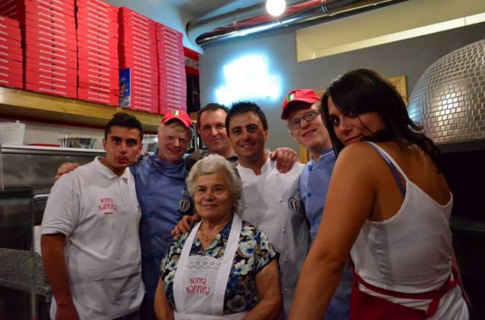 La pizzeria Nonna Nannina è a Cava dei Tirreni e la Nonna c’è davvero, arzilla più che mai nonostante le 85 primavere, Anna Milito, almeno un paio di volte la settimana scende in pizzeria a dare una mano ai nipoti: Pasquale, Daniele, e Nausica, quest’ultima nipote acquisita in quanto fidanzata di Pasquale e tocco di grazia muliebre in una pizzeria tutta al maschile che vede oltre a Pasquale Bisogno e al fratello Daniele altri due fratelli vicino al forno, Pietro e Paolo Talamanca Pizzaioli from Torre Annunziata.