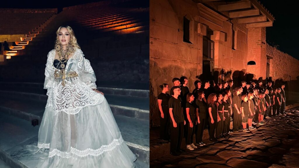 Nella circostanza l’artista ha deciso – come fanno sapere dallo stesso parco archeologico – di sostenere il progetto (che da fonti del parco costa annualmente 250.000 euro), che vede i giovani impegnati in un percorso creativo che culmina nella messa in scena di una commedia classica nel Teatro Grande, finanziando tutto l’anno 2024/25, il quarto dall’avvio dell’iniziativa, tramite la sua fondazione “Ray of Light”.