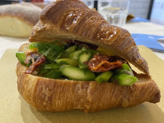Tecnica impeccabile per un grande classico della boulangerie francese:il croissant che qui è farcito con le verdure di stagione.