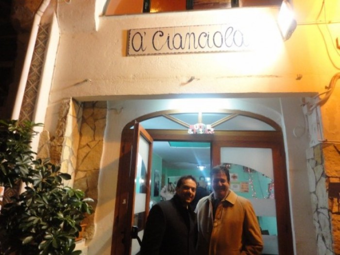 Eravamo lì a Cetara, il paese della colatura di alici, per assistere alla spillatura del tradizionale terzigno (recipiente di legno che equivale ad 1/3 della botte), per chi volesse saperne di più, qui è descritto il procedimento. Alla fine della festa, siccome era presto e siccome mi ero portato il lavoro da casa (dovevamo sentire alcuni vini), insieme al Pigna tutto gongolante per lo spettacolo della colatura appena spillata, cediamo all’invito del sindaco Secondo Squizzato per “una cena di lavoro” presso il ristorante “La Cianciola”.