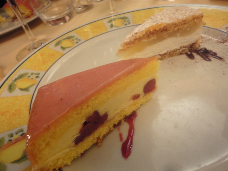 Chiudiamo con il doppio dessert: scazzetta con fragoline di bosco e la classica ricotta e pera.