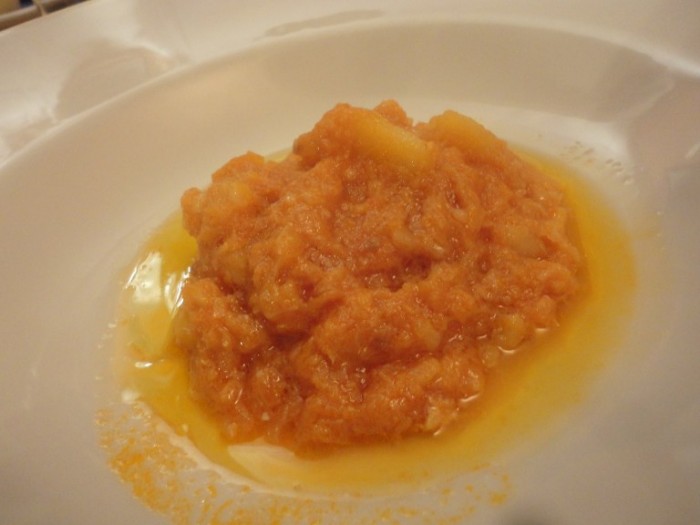 Sapori familiari e ancestrali, il classico “ Patane e baccalà” che si fa in tutte le case della Campania, gustoso e rassicurante. Su questo piatto abbiamo bevuto un vino senza etichetta…vi dò solo un indizio…era un Fiano di Avellino 2012 !!! Non ve ne parliamo … visto che siamo contro i conflitti d’interesse…NOI !!! ;-))