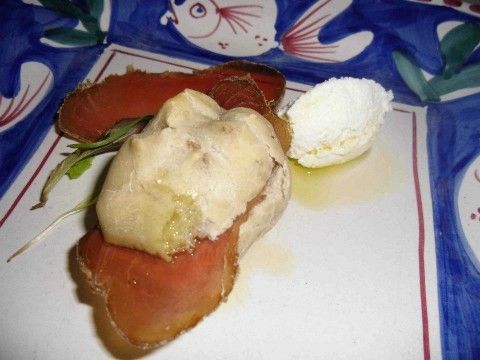 Tra i primi piatti, paccheri con crema di zucchine e bottarga di tonno, un gioco di contrasto facile facile ma gustoso e – più robusti – gli ziti conditi con la «bolognese di tonno» ricetta che, insieme alla genovese di tonno di Pasquale Torrente, ci ricorda quanto questo pesce sia davvero la “carne del mare”. Sapori decisi, forti, la sapidità marina si arrende dolcemente solo di fronte all'olio d'oliva.