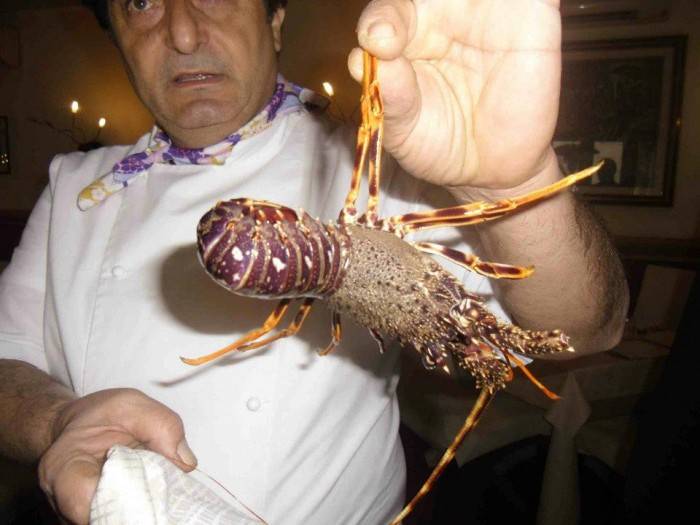 E poi ecco Franco con la sua aragosta locale che più locale non si può. Pescata qui vicino. E come fai ad impedirgli di metterla insieme a due linguine? Cottura della pasta perfetta, va via che è un piacere.