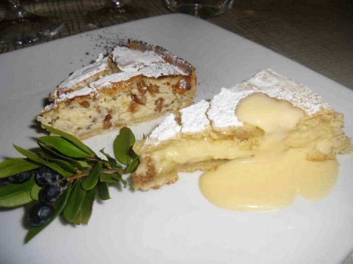 Per chiudere, dolci sempre ad un buon livello. Tradizionali ma alleggeriti. Millefoglie, caprese, pasticciotto con crema al limone, e una pastiera fatta con i cereali.