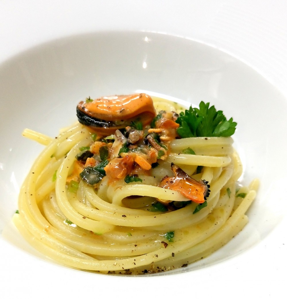Cetaria – Baronissi, Spaghettoni ai profumi della Divina Costiera con cozze e scorzetta di limone