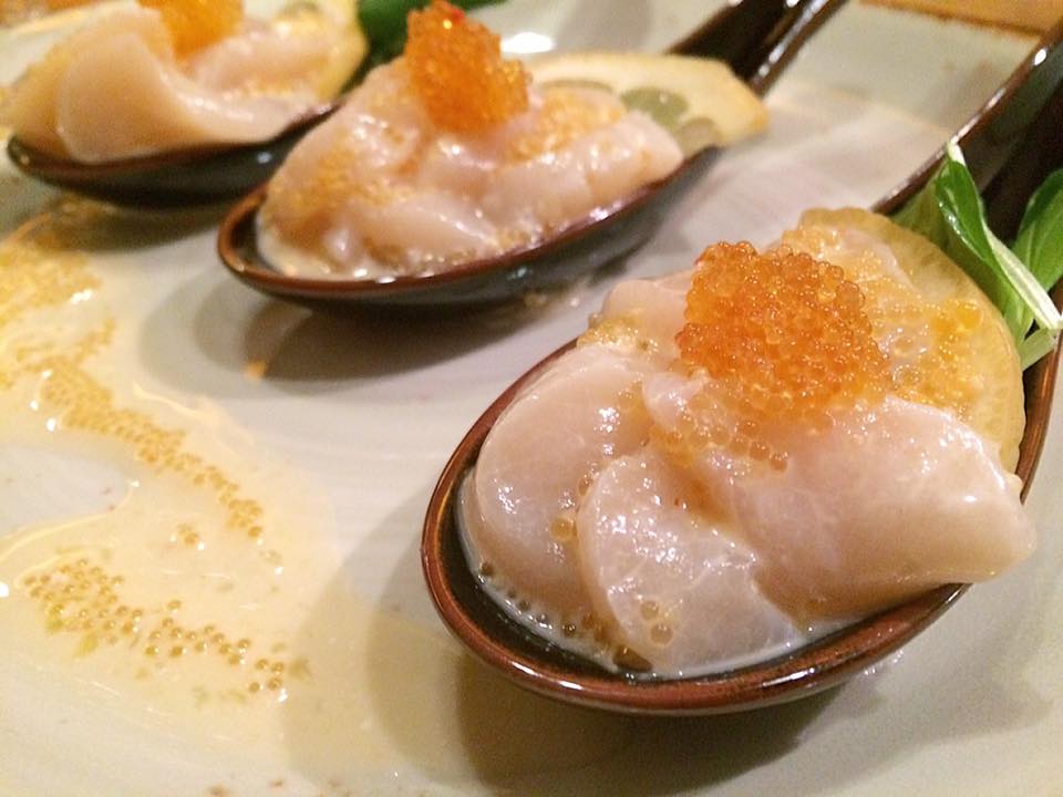 La ceviche si presta anche a delle interpretazioni contemporanee. La moda del 2.0 può essere applicata anche al sole del Perù. Una capsanta, semplicemente tagliata, salsa acidula giapponese. quel pizzico di sakè, di zucchero, di yuzu in più a sostituire il lime ed è subito magia. Rotonda, avvolgente la consistenza del mollusco in equilibrato contrasto con la marinatura.