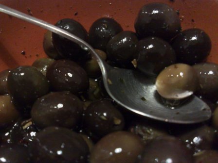 Ci son pure le olive. Uhm, buone. Salamoia equilibrata e non aggressiva, per nulla allappanti. Taggiasche?