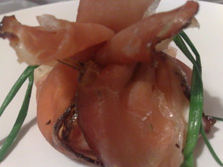 Prima i fagottini di speck con formaggio ed erba cipollina. Opera di Ros.