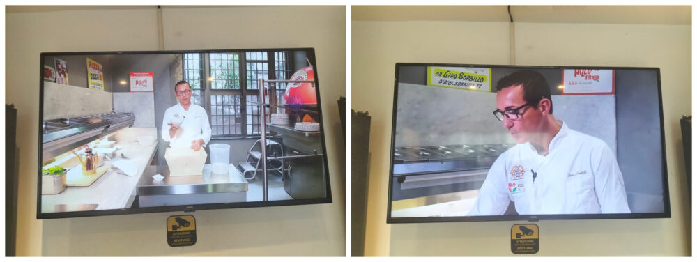 Ad attrarre la mia attenzione è un video proiettato alla parete, con protagonista Gino Sorbillo che fa il suo mestiere di pizzaiolo: che ci fa Gino proiettato in un vending store? Entro e si svela l’arcano: è una pizzeria senza pizzaiolo, metti i soldi e ti sforna la pizza in automatico. Scatto due foto, le condivido con gli amici e giù le risate…