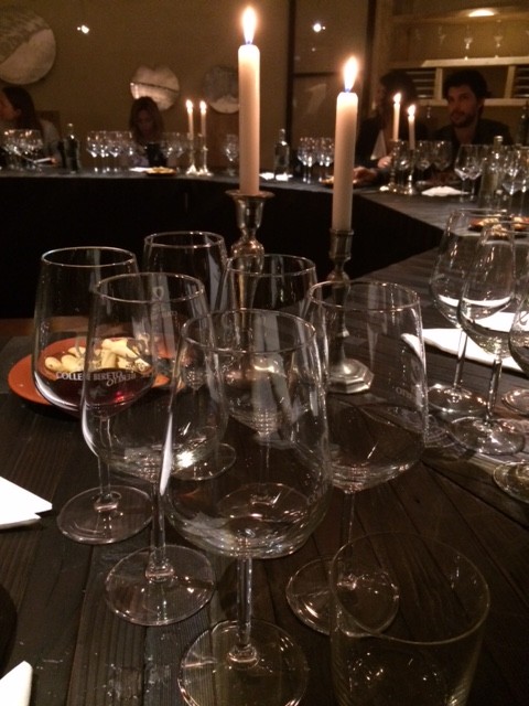 Tra il verde di questa terra antica, tra i vigneti pettinati che si arrampicano sulle colline terrazzate è partita una degustazione di vecchie annate di “Tocco” un sangiovese in purezza che oggi si fa in un altro modo (merlot) per testare la capacità di questo vitigno di invecchiare. Sei annate di ” Tocco” Colle Bereto dall’83 al 90, bottiglie tutte diverse tutte molto vive.