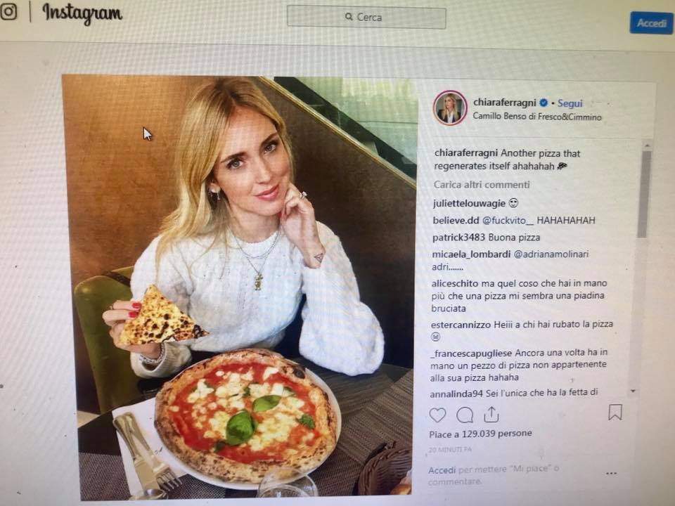 Ora la domanda è: chi sarà il primo pizzaiolo che riuscirà a farsi (gratis) un selfie con Chiara Ferragni?