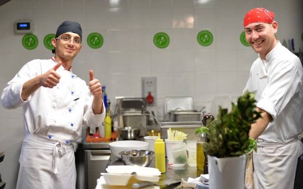 A fine pasto, si può anche portare via le ricette stampate o chiederne l’invio via e-mail. Una caratteristica che colpisce, l’obbligo quasi maniacale che viene imposto agli avventori di differenziare – subito dopo aver consumato il proprio pasto – quel che resta della consumazione: nel locale c’e’ una stanza attrezzata ad hoc davanti alla quale, prima di pagare il conto, si fa la a volte la fila per mantenere l’ambiente più pulito. Complimenti.