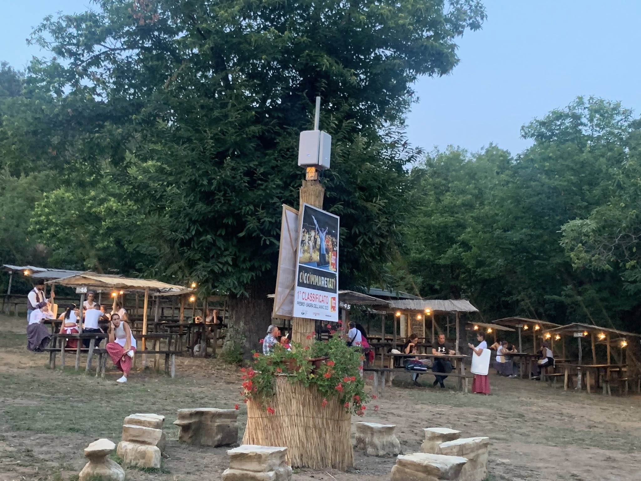 - Si svolge in un parco verde attrezzato. Un grande bosco di castagni secolari, ampio, pulito alle porte del paese, a circa 650 metri di altezza, con un parcheggio esterno grande, ordinato e disciplinato. Il clima è fresco, l’aria è pulita. La manutenzione viene fatta con cura e regolarmente.