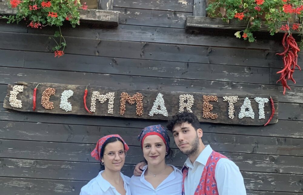 Ciccimmaretati è nata infatti nel 1992 a Stio, piccolo borgo del Cilento interno, con l’intento di promuovere un antico piatto tipico, una zuppa di legumi e cereali “maritati”, cioè messi a cuocere insieme, quando la necessità per contadini e braccianti era quella di un piatto altamente proteico. Gustosa, ricca di sapore, questa ricetta resta ancora oggi la regina della festa. Nel menu si trovano poi tutti i piatti della cucina povera cilentana: dai cavatelli al pomodoro alle melanzane ripiene di cacioricotta di capra; dal grano cotto al forno con il formaggio alla minestra asciutta di ‘foglie e patate’, servite col “viccio”, pane antico a forma di ciambella o disco, che veniva originariamente utilizzato per testare la temperatura dei forni a legna prima di infornare pane e pizza. E poi, ancora, patate al forno, caciocavallo e da bere vino cilentano, ovviamente.