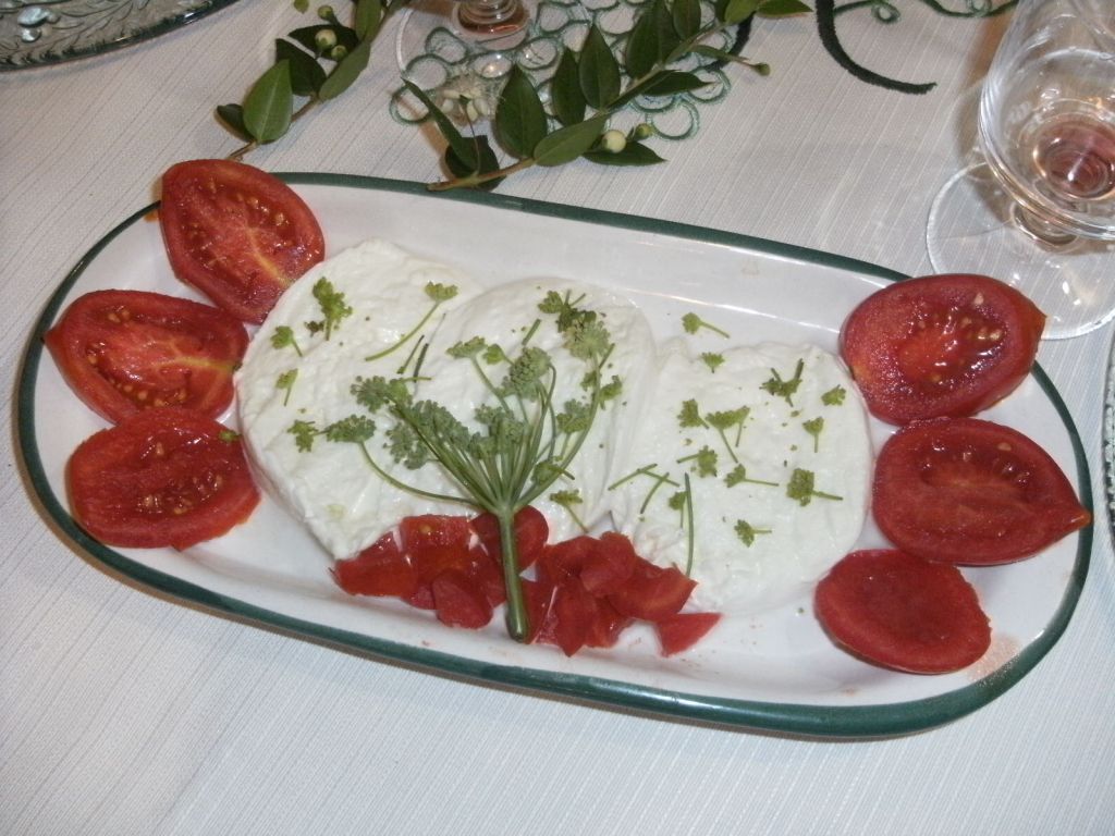 Una caprese con mozzarella di bufala, pomodori e finocchietto selvatico.