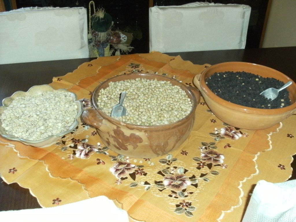 Poi ci fa accomodare ad un tavolo già preparato per l’occasione nell’ampia ed accogliente sala da pranzo. Intanto in cucina fervono i preparativi e Giovanna è costretta a fare la spola tra il nostro tavolo ed i fornelli. Vorremmo che si sedesse con noi, perché è piacevole ascoltarla con quella sua voce pacata e suadente, ma lei deve correre in soccorso della sorella Antonietta che sta preparando squisiti manicaretti. Mi fa scegliere il vino, una bottiglia di Naima di De Conciliis, e poi comincia a presentare i suoi gioielli.