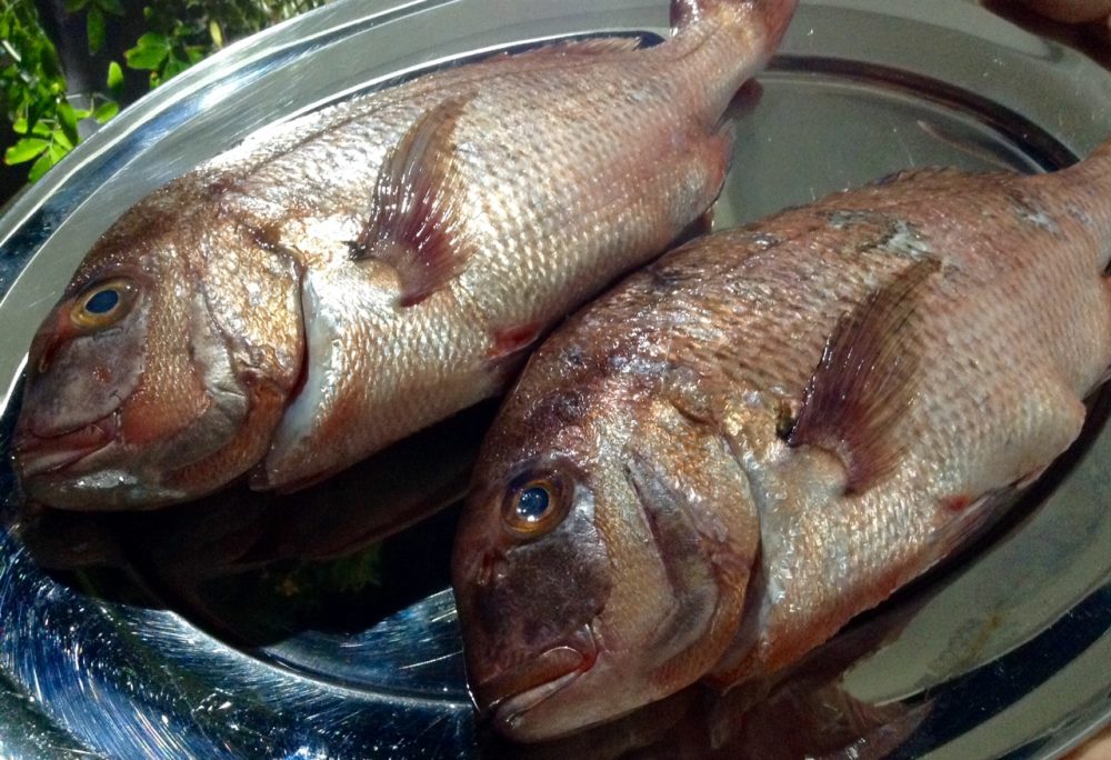 I dentici, 1383 grammi esatti l’uno, che è anche una battuta, ho visto il video sul cell dello chef, sono arrivati qui ancora vivi…