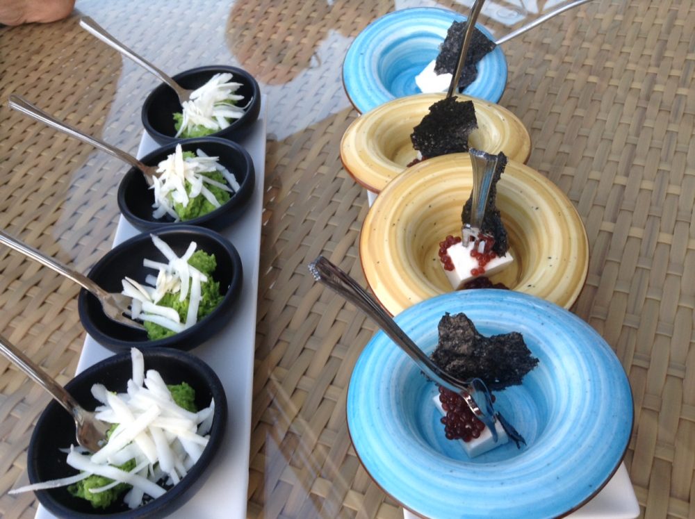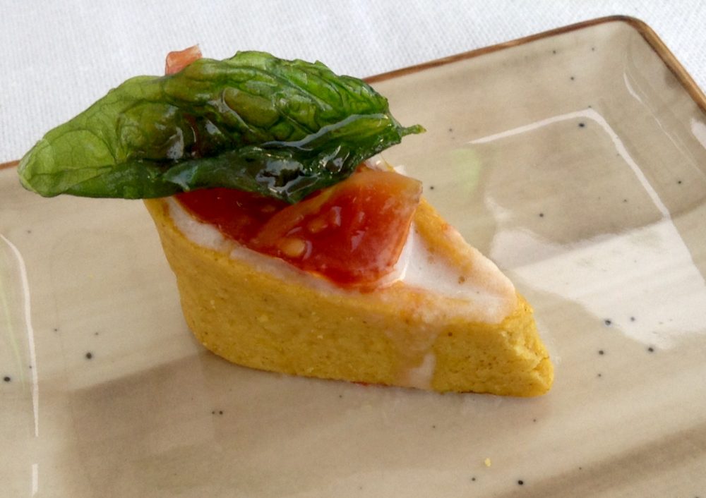Brisè, basilico, pomodoro e formaggio, numerosi i finger proposti anche con crudo di pesce per un aperitivo a bordo vasca, prima del carpiato con un carpione ma con un fritto cilentano è meglio…