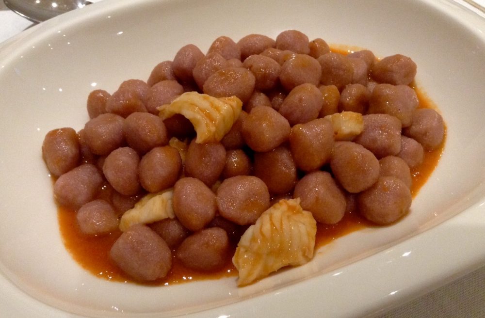 Gnocchetti di patate viola e ristretto di scorfano, avevo provato gli gnocchetti con una crema di baccalà in proporzione eccessiva, più equilibrato e goloso questo fuori carta