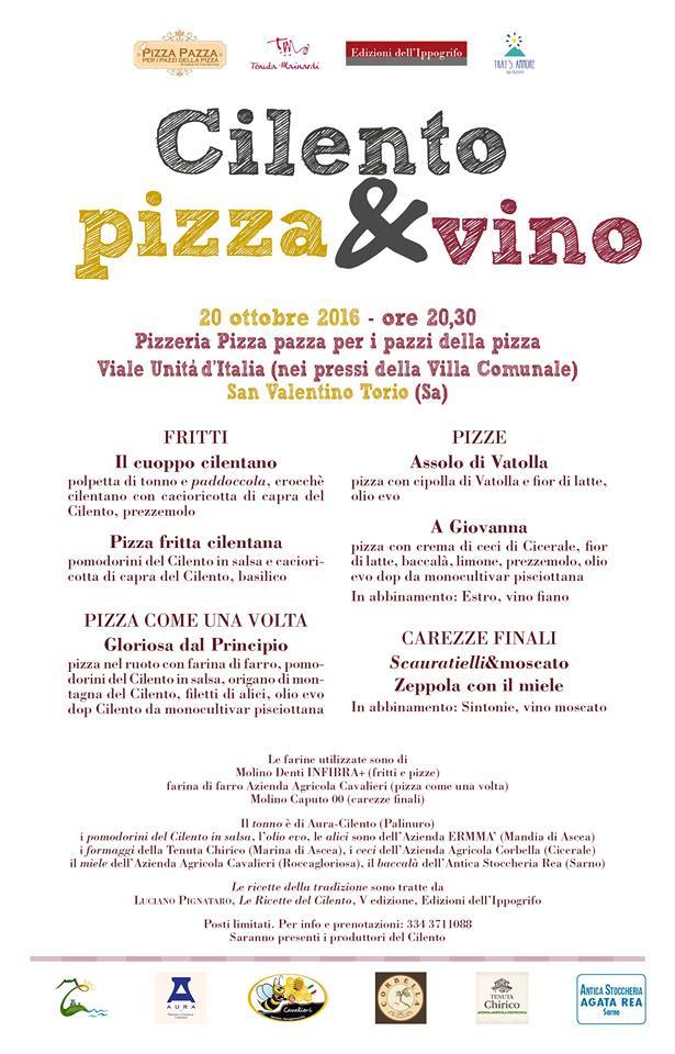 Ancora una volta il Cilento in tour, questa volta dall’altra parte della provincia, a San Valentino Torio, per una breve ma intensa tappa che porta alla scoperta dei prodotti e delle ricette del Parco Nazionale. Giovedi 20 ottobre ad incontrarsi saranno la pizza di Angela De Vivo, talentuosa giovane pizzaiola che lavora a Sarno e il vino cilentano di Tenuta Mainardi. Una bella occasione d’incontro e di festa per degustare i prodotti del Parco, a partire dai ceci di Cicerale con il libro «Le Ricette del Cilento» edito dall’Ippogrifo.