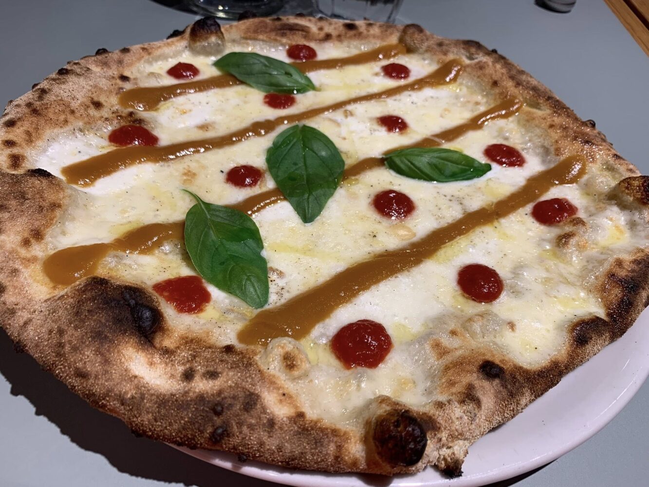 E veniamo alla pizza. Qui si lascia il giusto spazio ai gusti classici, dalla margherita alla marinara, alla diavola e così via. E poi c’è la sezione delle pizze più originali, con un occhio sempre attento alle produzioni locali. L’impasto è ben lievitato e la pizza ha un gusto antico, leggermente croccante con cornicione contenuto.