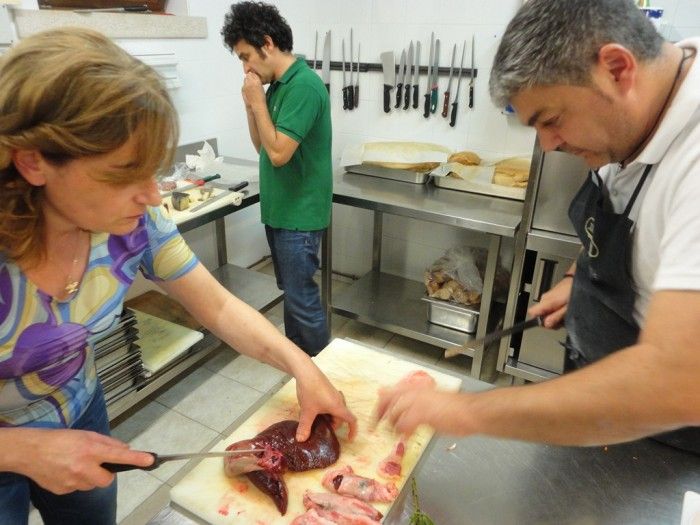 Dopo aver assolto ai compiti istituzionali, ossia la consegna della regina Ramata di Montoro, dei preziosissimi semi di Broccolo Aprilatico di Partenopoli, affidati nelle sapienti mani di Riccardo Bàrbera, titolare di “Masseria Bàrbera”, il meraviglioso agriturismo che ci ospita, e della “zizzona” di podolica dell’altopiano del Laceno, (poi ne parliamo caro Albert Sapere)… ci cimentiamo (non io naturalmente, ma la Flavia, sono andato cheffamunito) nella preparazione del soffritto di cinghiale all’Irpina e della ramata con pupacchie all’insalata di aceto di Taurasi.