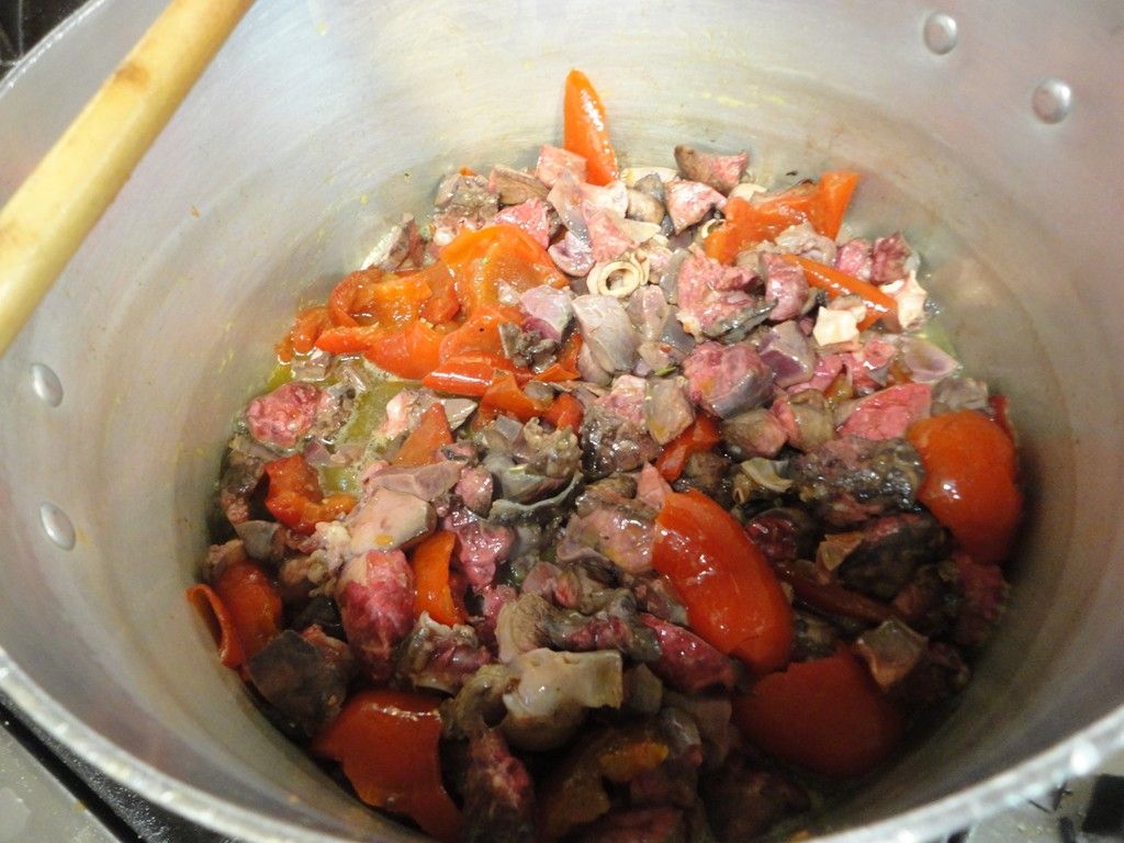 Per dovere di cronaca, non posso esimermi dal riportare i numerosi ed incessanti tentativi di operare distrazioni alla volta del sottoscritto e della mia cuciniera di fiducia operati durante le preparazioni dal Riccardino, tutti finalizzati a sminuire le grandi potenzialità della cucina Irpina. Tali tentativi si concretizzavano nell’assillante offerta di cibi e vini in degustazione. Del che è verbale!!! ;-))