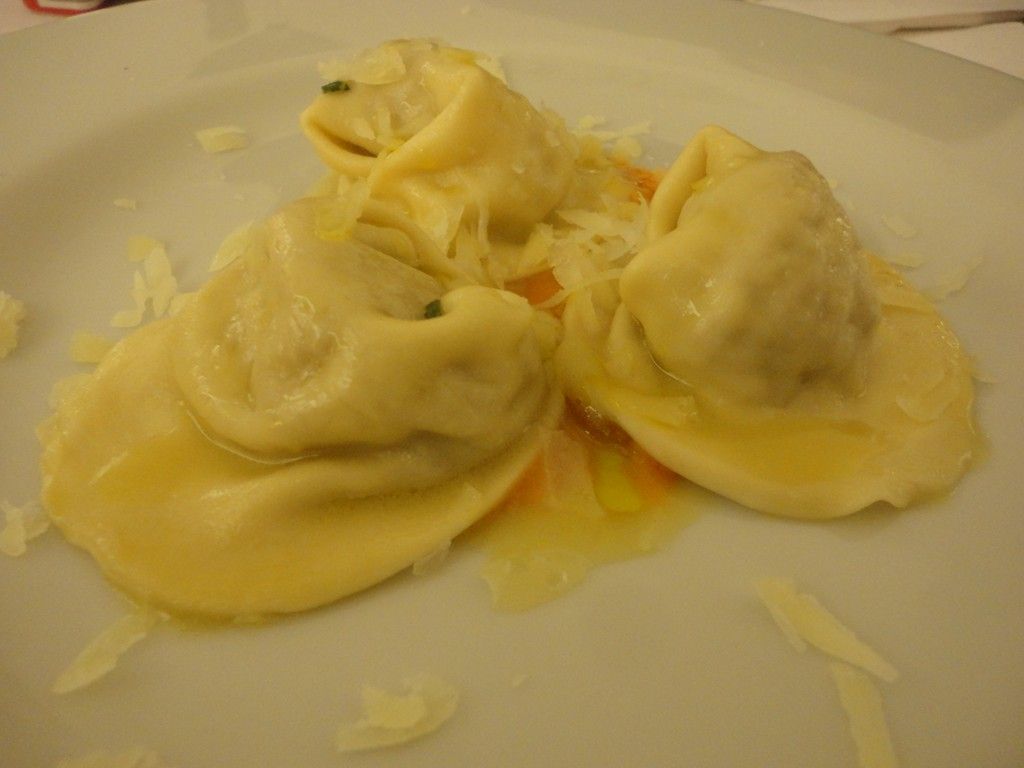 A tavola si inizia con una zuppa di soffritto di cinghiale, questa preparata da Flavia, scusate il conflitto d’interesse, semplicemente divina… Proseguiamo con ravioloni allo stracotto di cinghiale su salsa di zucca agrumata, piatto perfettamente equilibrato e gustoso, questo preparato dallo chef di Masseria Bàrbera, Nicola Maino.