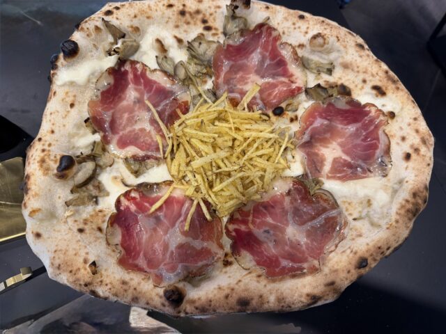 Negli anni lo stile di Ciro Casale si è evoluto: dalla pizza napoletana contemporanea, con bordi più pronunciati, è passato a una stesura più ampia e sottile, che richiama la “ruota di carro”, puntando anche su una maggiore scioglievolezza. L’impasto è diretto, realizzato con un blend di cinque farine e panetti da 280 grammi.